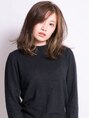 鎖骨くらいの長さのセミロングを外はねさせて、エフォートレスなセミロングスタイルに。長めに残した前髪は緩やかに流して大人っぽく。