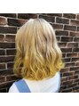 【ANALOGUE】ホワイトベージュ 裾カラーイエロー 波ウェーブボブ/ホットペッパービューティー