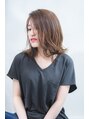 レイヤーの入っていないシンプルな長めボブスタイル。毛先に動きがでるように、内側を少し軽くカットしておくのがポイントです。肩につく長さなので、自然に外ハネしやすいスタイルです。