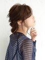 上から編みこみをした後、最後にくるりんぱをしてまとめたスタイル。顔周りに残す髪のバランスを調整し、両サイドはねじって後ろに持っいった大人っぽいアレンジです