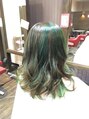 表面と襟足に大胆にいれたインナーカラーと、さりげなくチラリと見えるピンクのエクステがポイント!