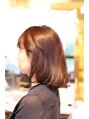誰でもトライしやすいスタイルで内巻きの簡単スタイルです。細毛でエイジング毛でも大丈夫です。暖色にすることで、ツヤツヤが手に入り、高感度も上がります。更にお肌を白く見せます。<堀江・新町>