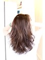 動きにくいロングスタイルにこのデザイいんでパッと華やかに印象を変えてくれます。内側に入れている為普段はハイライツが見えすぎなく髪を動かすたびに見え隠れがオシャレ。柔らかい髪も、ヴォリュームが出てフンワリ見えます。<堀江・新町>