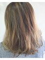 ブリーチバレイヤージュでハイライトを入れました。ベースカラーはスロウカラーで赤みを抑えたアッシュ系に。こなれ感のある外国人風カラーです。