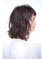切りっぱなしボブベースに柔らかさを出すためにパーマをかけて無造作に。ミディアムそして顔まわりにレイヤーを。カラーは、ブルー系のカラーで透明感もプラス!