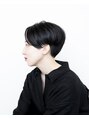 アウトラインをすっきり刈り込んだショートスタイル。前下がりにカットして横からみた時も、すっきりした印象に。エッジのあるスタイルなのでカットラインを柔らかく女性らしい印象に。