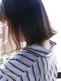 ぱつんとしたラインのボブ。前髪もぱつんと。重すぎたり硬すぎたりしないように柔らかく見せるために毛量や質感づくりにこだわっています。