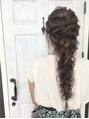 柔かい感じになるようにコテで、波ウェーブにまいて表面はもっと動きがでるようにミックス巻きでまきました。前髪もワンカール!!