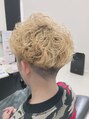 アウトラインはすっきり刈り込み、あとは全体にしっかりとパーマを施しました。
