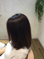 肩につく長さですが毛先をほどよく軽くして肩についても良い感じに仕上げてあります。伸ばしかけの方にもオススメの髪型です。