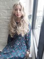 ◆グラデーションカラー/ノーブルカラー/アンニュイロング/ドーリーヘアー/ベージュカラー/個性的/自分らしさ/ハイトーン/厚めバング/ルーズ/くせ毛風/無造作/くせ毛風ベージュ外国人風重めバングマーメード無造作ミディアムボブ個性的ハイトーン