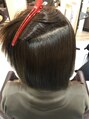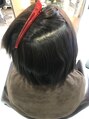根元が折れたようにクセが伸びてしまった状態です。ボブスタイルはあまりストレートすぎない自然な丸みが重要のスタイルなので強すぎない薬剤でアイロンの当てすぎないように気をつけました。自然に仕上がれば伸びてきても根元折れは改善されます【銀座】
