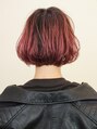 カットラインが少し強めのパッツンワンレンボブです。カラーは根本から毛先にかけてグラデーションをかけてブリーチ後、レッド系のカラーをオン。ジェンダーレスなロックの雰囲気に仕上げました。