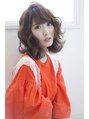 可愛いスタイルは【ブックマーク】しておくと便利です☆トップ、顔周りにレイヤーを入れたひし形シルエットのミディアムスタイルです。カラーはミルキーグレージュで柔らかさを引き出しました。仕上げは波巻きをmixしてふんわりとスタイリングしました。