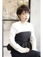 暗めのアッシュでモード感のあるショート。厚めでさっくり落とした前髪がナチュラルかつ、小顔に見せてくれます。丸いシルエットは洋服とのバランスが取りやすく、全体のスタイルアップにもつながる万能ショートです。