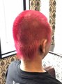 レッド&スノーピンク もみあげ 襟足は長めに残してカットしてます♪