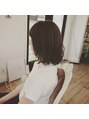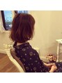 切りっぱなしボブに外はねパーマカラーはカーキアッシュで。