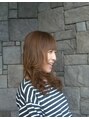 力をぬいたナチュラルカールと風の流れに沿ったレイヤーカット。カラーは優しい暖色系のオレンジ
