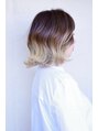 外ハネの切りっぱなしボブに軽さを出した重軽スタイルです。ブリーチで毛先を3度抜いてから、毛先に向かって徐々に明るくなるようにミルクティー系をオン!根元から中間は7レベルのモノトーン系になっております!