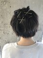 襟足のないショートでもアレンジできます!前髪をねじってピンで止めただけの簡単アレンジ♪外ハネに巻いて抜け感を出すのがポイントです!バームをつけてセミウェットな質感に!