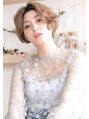 ふんわり巻いたひし形シルエットのショートスタイルは女性らしい印象になります。軽くコテを入れることでボリュームが出てバランスが取りやすくなります。カラーはくすみ系のベージュに仕上げました。ハイライトを入れることでより明るめにみせています。