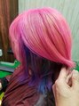 ビビッドなピンクをベースに、インナーには青と紫のブロックメッシュを交互に入れた、ド派手なスタイルです☆もちろん、違う色で遊んでもOKです!ほかの人と被りたくない方はぜひ!