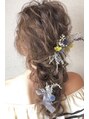 - ヘアセット ドライフラワー アップスタイル シニヨン ハーフアップ 結婚式 二次会 ヘアアレンジ