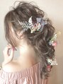 - ヘアセット ドライフラワー アップスタイル シニヨン ハーフアップ 結婚式 二次会 ヘアアレンジ