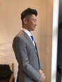サイド、バックが刈り上げてトップから前髪にかけてパーマをかけてあります