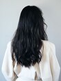 波ウェーブがこなれ感のある、決まりすぎないロングスタイル。瞳ギリギリに設定したバングがアンニュイな印象。中間から強めにパーマをかけることで、コンパクトなシルエットで頭を小さく見せます。大人っぽく演出したい方におすすめ!