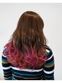 毛先にビビッドなピンクヴァイオレットを入れたグラデーションカラー。