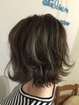 シルバーハイライトです、ブリーチ2回の細いハイライトにシルバーアッシュを入れて黄ばみを調節
