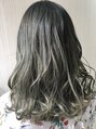 2ブリーチをして2色使ったグラデーションカラーです。根元はダーググレーにグリーンで毛先は巻くと白っぽさを感じるカーキグレージュで染めました。グレーに飽きて夏カラーにしたい方オススメです。ダメージが気になる方は新素材ブリーチがオススメです。