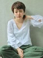 フレンチベリーショート。斜めバングがフレンチっぽくてかわいらしい。短くても、毛流れや、ざっくり感でかわいらしく女性らしいショートになりますよ!