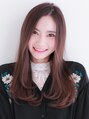 清楚な印象のセミロングスタイル。小顔に見えるように目の横辺りに毛束を落とすのがポイント★ヘアカラーはイルミナカラーのオーシャンで透明感のあるアッシュベージュに♪