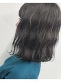 ブルーやグリーンでしっかり赤味を抑えたマットグレージュ☆気に入ったスタイルは「ブックマークする」ボタンを押してご来店時ご提示ください!切りっぱなしボブ,グラデーションカラー,バレイヤージュ,地毛,黒髪,大人かわいい,ボブ,バレイヤージュ