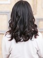 髪色が暗めでもパーマを加える事で軽さが出るウェーブ スタイル。 強弱が入ったウェーブはセットがしやすくなります。 忙しい毎日の朝が楽になるパーマです。[町田駅]
