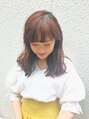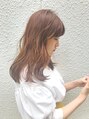 外ハネをベースにおおきくウェーブをつけたスタイル。カラーはイルミナカラーでベビーピンクでに。キツく見られがちな方にオススメなスタイルです。