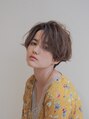 前下がりのショートをベースに、ふんわりと柔らかく見えるようにパーマをかけています!!襟足はスッキリと刈り上げることによって頭のバランスを整え、外国人風の質感を出しています!!