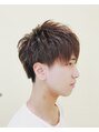 アウトラインをツーブロックにしたスッキリスタイル前髪は流しても上げても決まります。ヘアアイロンで外ハネ感を入れてアクセントにしました。