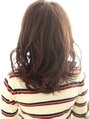 全体に大きめのカールでアンニュイ感を出しました。ローレイヤーで重さを強調してパーマでニュアンスを出すことでリラックス感もアップ。中間からランダムなカールを作り毛先を逃がす。
