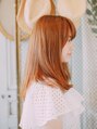 胸上の位置にカット。少し段を入れて毛先を柔らかくしたAラインのスタイルです。バングも目にかかる少し長めに調整。流すことにより大人可愛い雰囲気に!