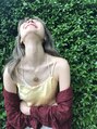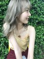 肌の色に合わせた、くすませ過ぎないブロンドヘア。シルバーも少し配合しツヤありのダブルカラー。細かいハイライトを全体にいれ、根本の微妙なグラデーションもおしゃれです。