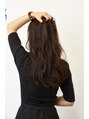 オトナ世代にオススメ!鎖骨下の長さで女性らしい雰囲気に。結んでも下ろしてもOK。前髪は眉くらいで毛先を流しました。カラーは8レベルのブラウンベージュで程よく明るい雰囲気とツヤ感をプラス。セットはカールはアイロン、不器用な方はパーマで。