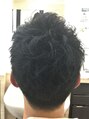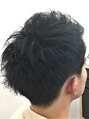 癖毛をパーマ風に生かしたトップの束感で遊び心を表現。サイド、バックともにスッキリ男らしくカット。
