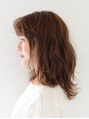 ベースは毛先に厚みを持たせた切りっぱなしシルエット。表面に軽くレイヤーで動きを持たせたら、大きめのロッドでゆるやかなウエーブをかけて、思わず触れたくなる柔らかな雰囲気に。前髪はかすかな束感で。抜け感と上品な印象をプラス!