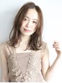 前髪を長めに残した大人ミディスタイル。毛先にルーズなワンカールで仕上げた。