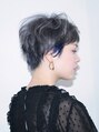 ケアブリーチを使用しているので髪のダメージも気になりません!シルバーヘアのもみあげにブルーのアクセントカラーを入れたショートスタイル!大きめピアスも似合います!