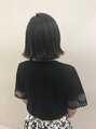 切りっぱなしボブにスモーキーな8トーンのブルーミントでヘアカラーしました^^外ハネにセットしても良く内巻きにセットして落ち着いた印象にセットしてもgoodです!