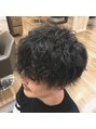 長めバングのマッシュショートに、ツイストスパイラルの無造作なパーマが男の色気を引き出す。サイドとバックはツーブロで刈り上げているので、毛量が多くて気になる方でもおすすめのパーマスタイルです。